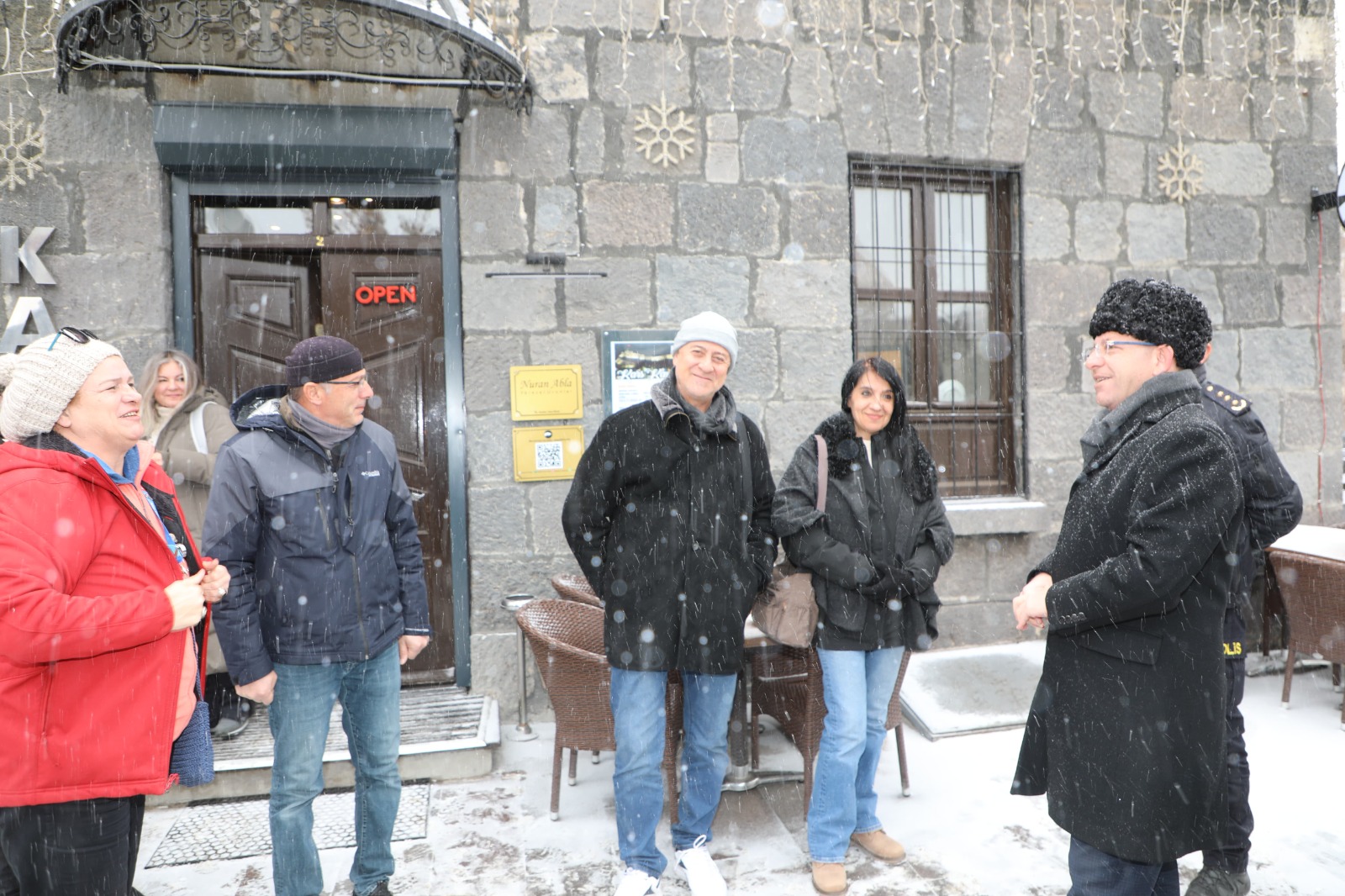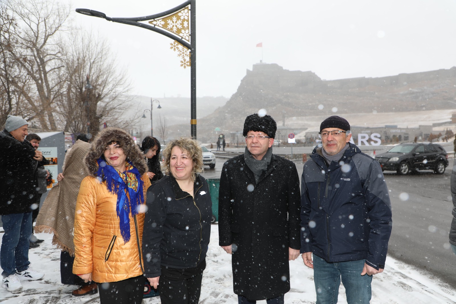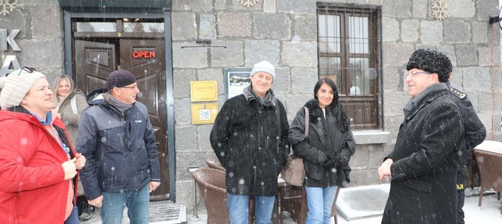 Kars’a gelen misafirlerle yakından ilgilenen Vali Ziya Polat, kente gelen turistleri lapa lapa yağan kar yağışı altında karşılayarak onlarla sıcak bir sohbet gerçekleştirdi. Kars’ın marka şehir olduğunu vurgulayan Vali Polat, şehrin tarih, kültür, turizm ve ilklerin şehri olarak önemli bir yere sahip olduğunu belirtti. Karla kaplı Kars’ın, özellikle kış turizmi açısından büyük bir cazibe merkezi olduğunu ifade eden Polat, misafirlere Kars’ı tercih etmelerinden dolayı teşekkür etti ve kendilerine iyi tatiller diledi.