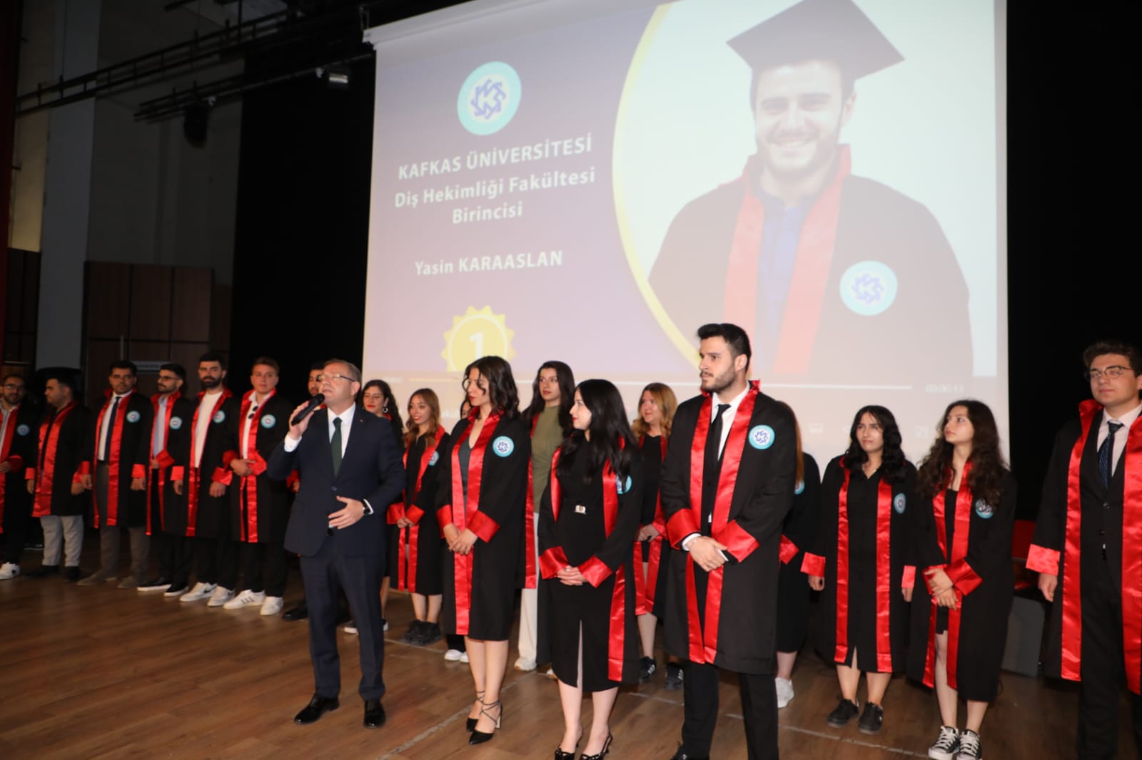 Kafkas Üniversitesi yerleşkesinde düzenlenen törene, Kars Valisi Ziya Polat da katılarak öğrencilerin bu anlamlı gününde yanlarında oldu. Tören boyunca hem öğrencilerin hem de ailelerinin heyecanı gözlerinden okunurken, Vali Polat’ın katılımı törene ayrı bir anlam kattı.