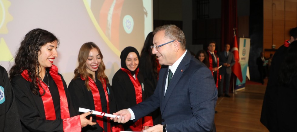 Aileler ise çocuklarının mezuniyet gururunu büyük bir mutlulukla yaşarken, akademisyenler de öğrencilerini geleceğe uğurlamanın onurunu yaşadı. Tören sonunda keplerini havaya atan gençler, eğitim hayatlarının bu önemli basamağını sevdikleriyle birlikte coşkuyla kutladı.