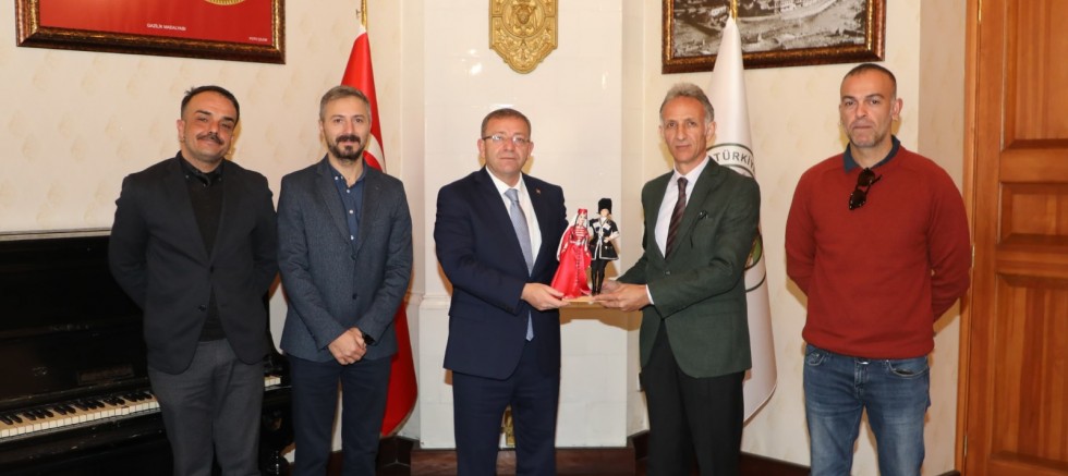 Kafkas Üniversitesi Güzel Sanatlar Fakültesi Dekanı Prof. Dr. Mitat Durmuş ve beraberindeki Bölüm Başkanları, Kars Valisi ve Belediye Başkan Vekili Ziya Polat'ı ziyaret etti.