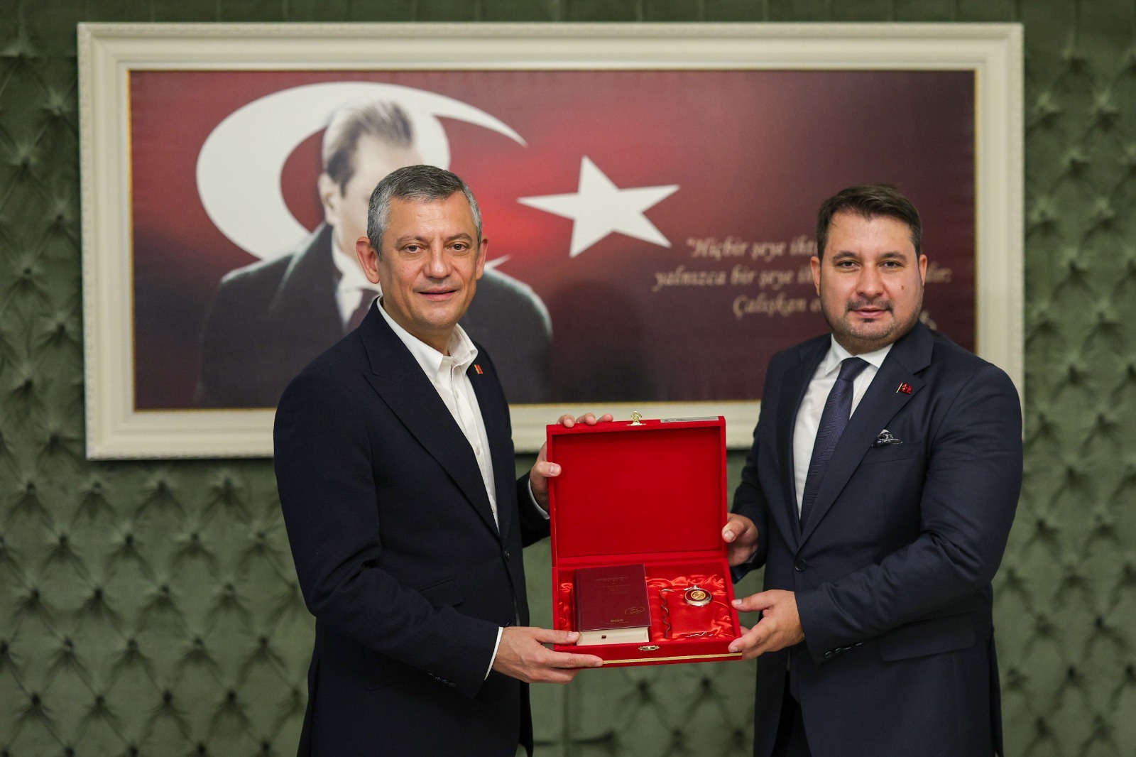 Belediye Başkanı Selim Çırpanoğlu, makamında ağırladığı Özgür Özel’e özel yapım bir bıçak, köstekli saat ve Nutuk kitabı hediye etti. Ziyaret sırasında, ilçede hâkim olan siyasi nezaket iklimi ve huzur ortamına dikkat çeken Çırpanoğlu, Kahramankazan’da herkesi kucaklayan bir yönetim anlayışını benimsediklerini ifade etti.