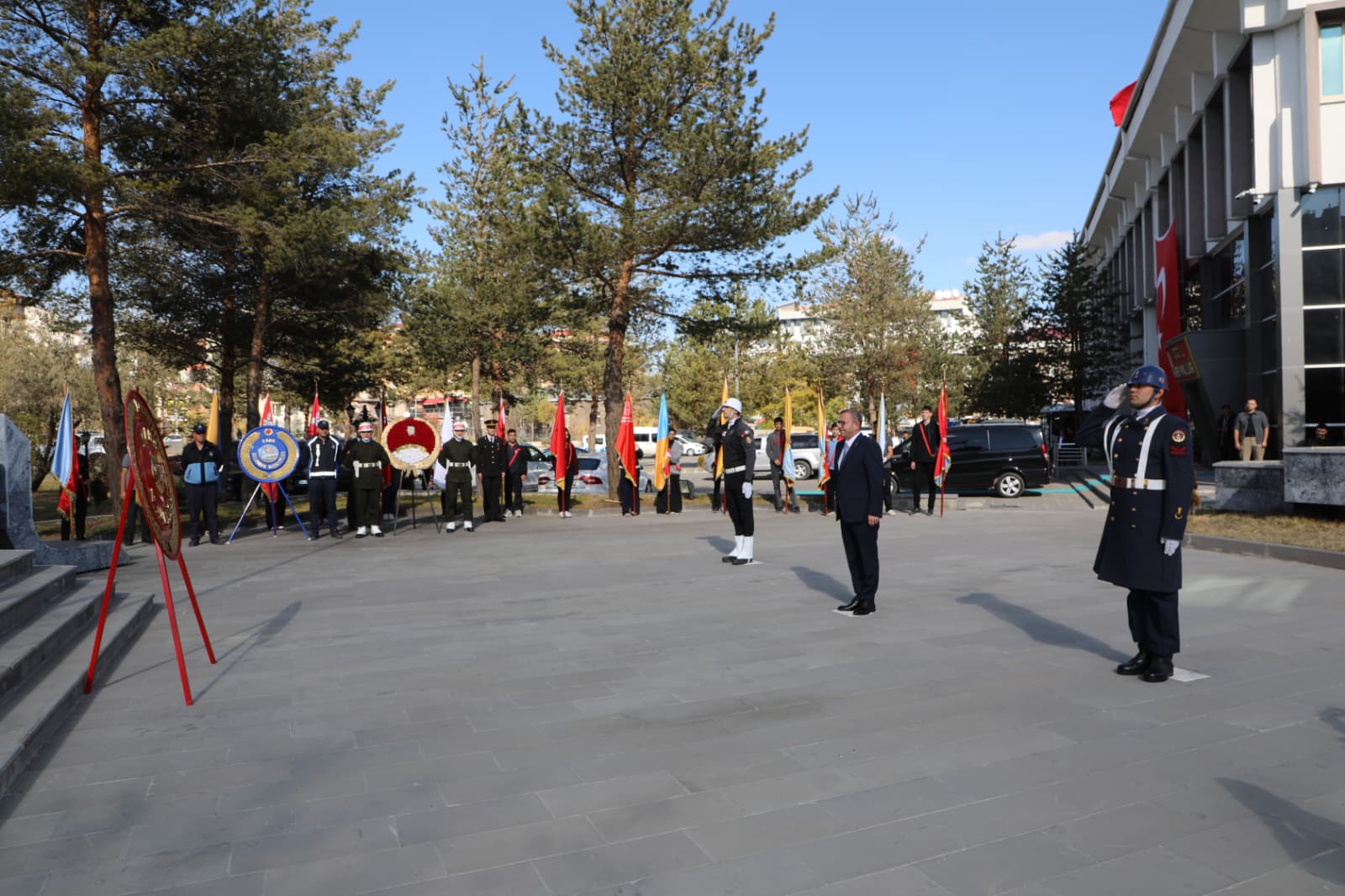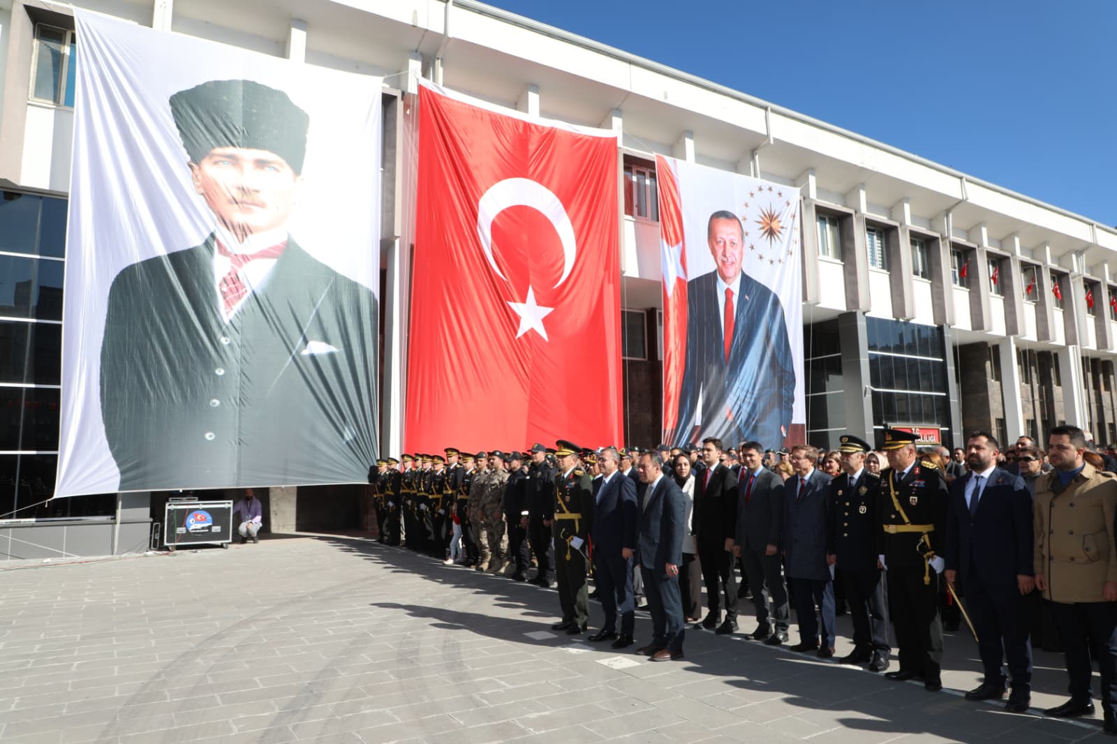 Valilik binası önünde toplanan kalabalık, İstiklal Marşı’nın okunması ve saygı duruşu ile kutlamalara başladı.