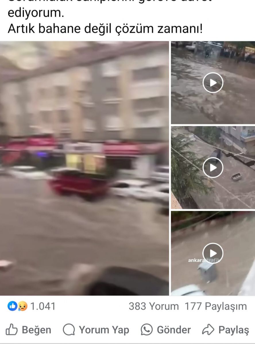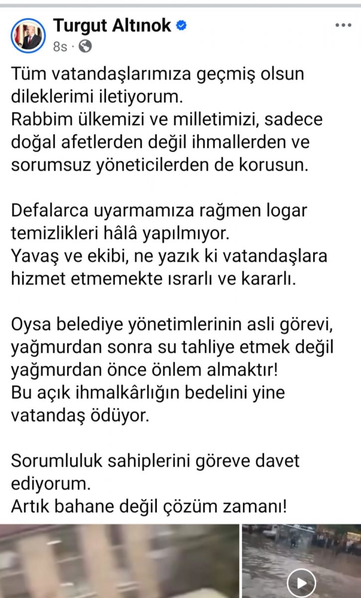 Sel sonrası, önceki dönem Keçiören Belediye Başkanı Turgut Altınok, sosyal medya hesabından yaptığı paylaşımla mevcut yönetimi dolaylı şekilde eleştirdi. Ancak Altınok’un bu paylaşımı sosyal medyada büyük bir tepkiyle karşılandı.