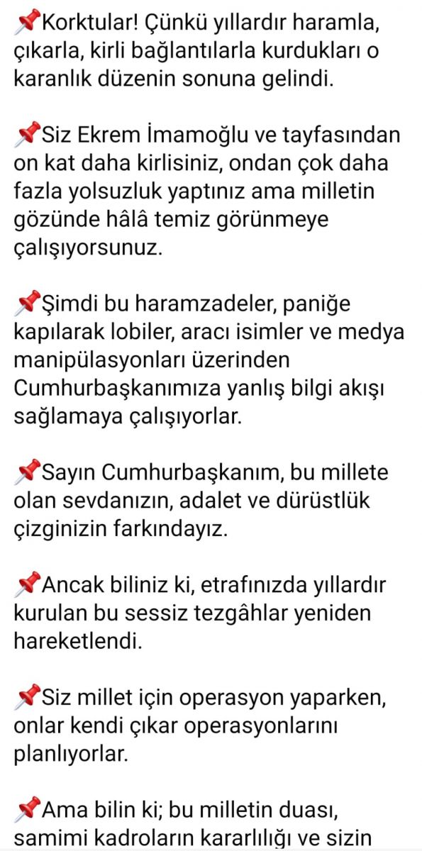 Şimdi bu haramzadeler, paniğe kapılarak lobiler, aracı isimler ve medya manipülasyonları üzerinden Cumhurbaşkanımıza yanlış bilgi akışı sağlamaya çalışıyorlar.