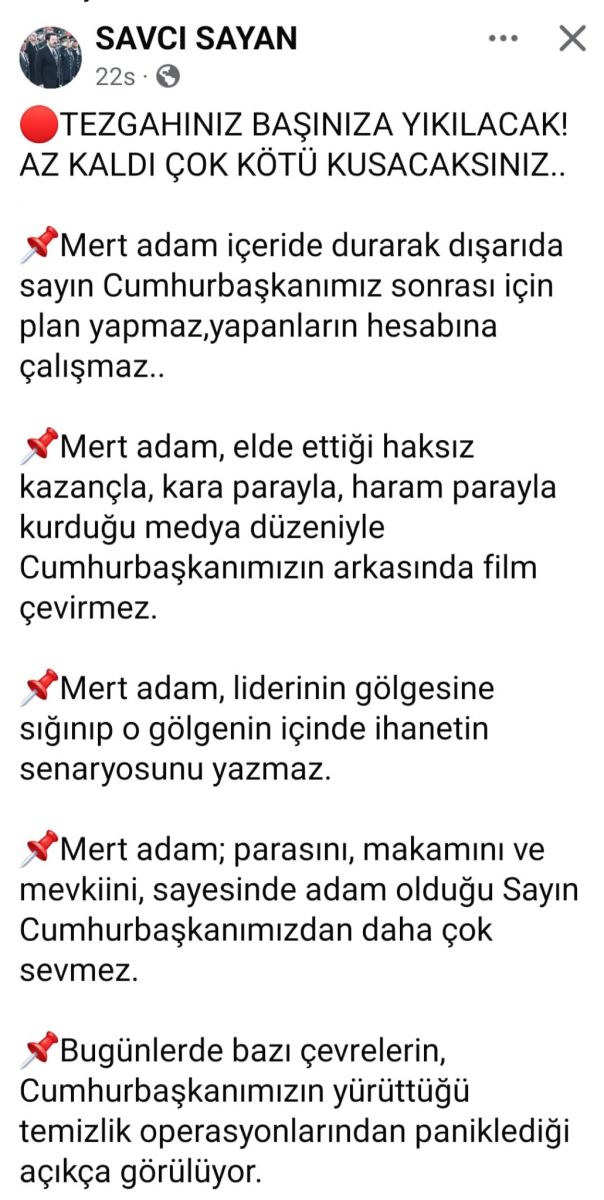 Ağrı eski Belediye Başkanı Savcı Sayan, sosyal medya hesabında sert eleştirilerde bulundu.