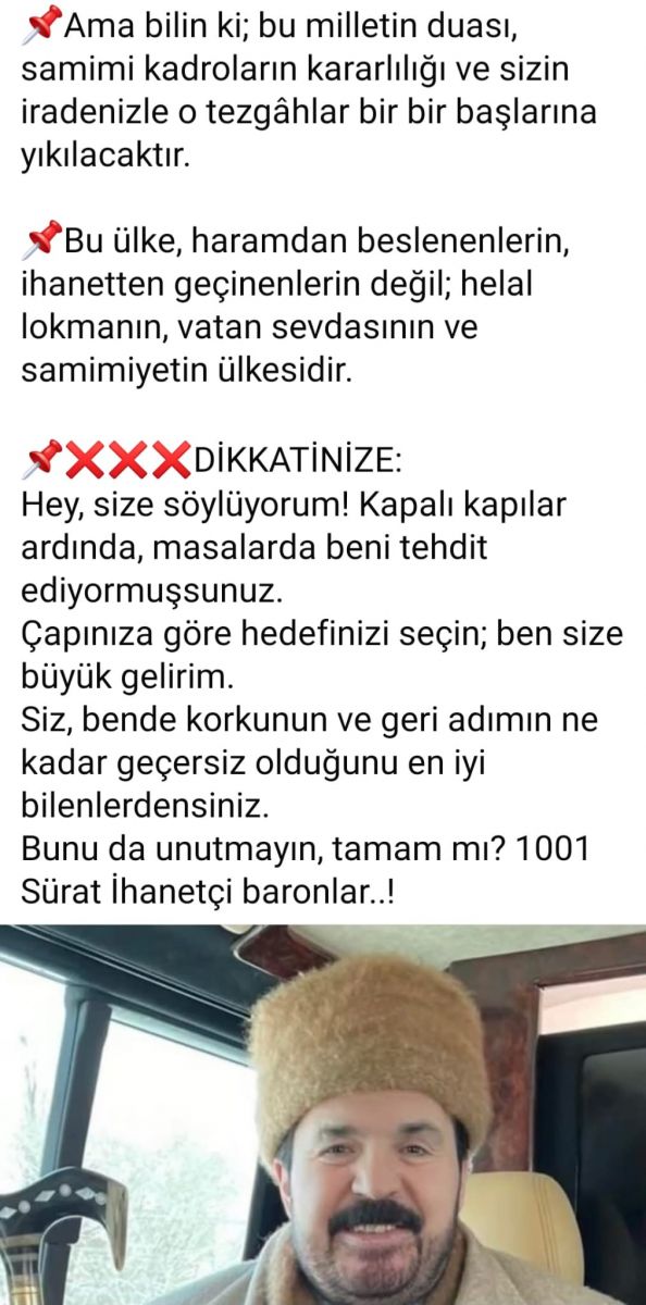 > Bu ülke, haramdan beslenenlerin, ihanetten geçinenlerin değil; helal lokmanın, vatan sevdasının ve samimiyetin ülkesidir.